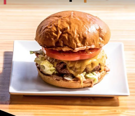 Queso cheddar, lechuga, tomate, cebollas fritas, mayonesa, nuestra salsa secreta.