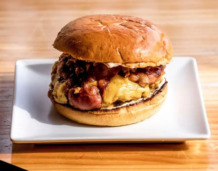 Bacon, queso cheddar, cebollas fritas, mayonesa, nuestra salsa secreta.