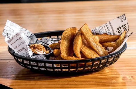 Queso cheddar, mayonesa, nuestra salsa secreta.